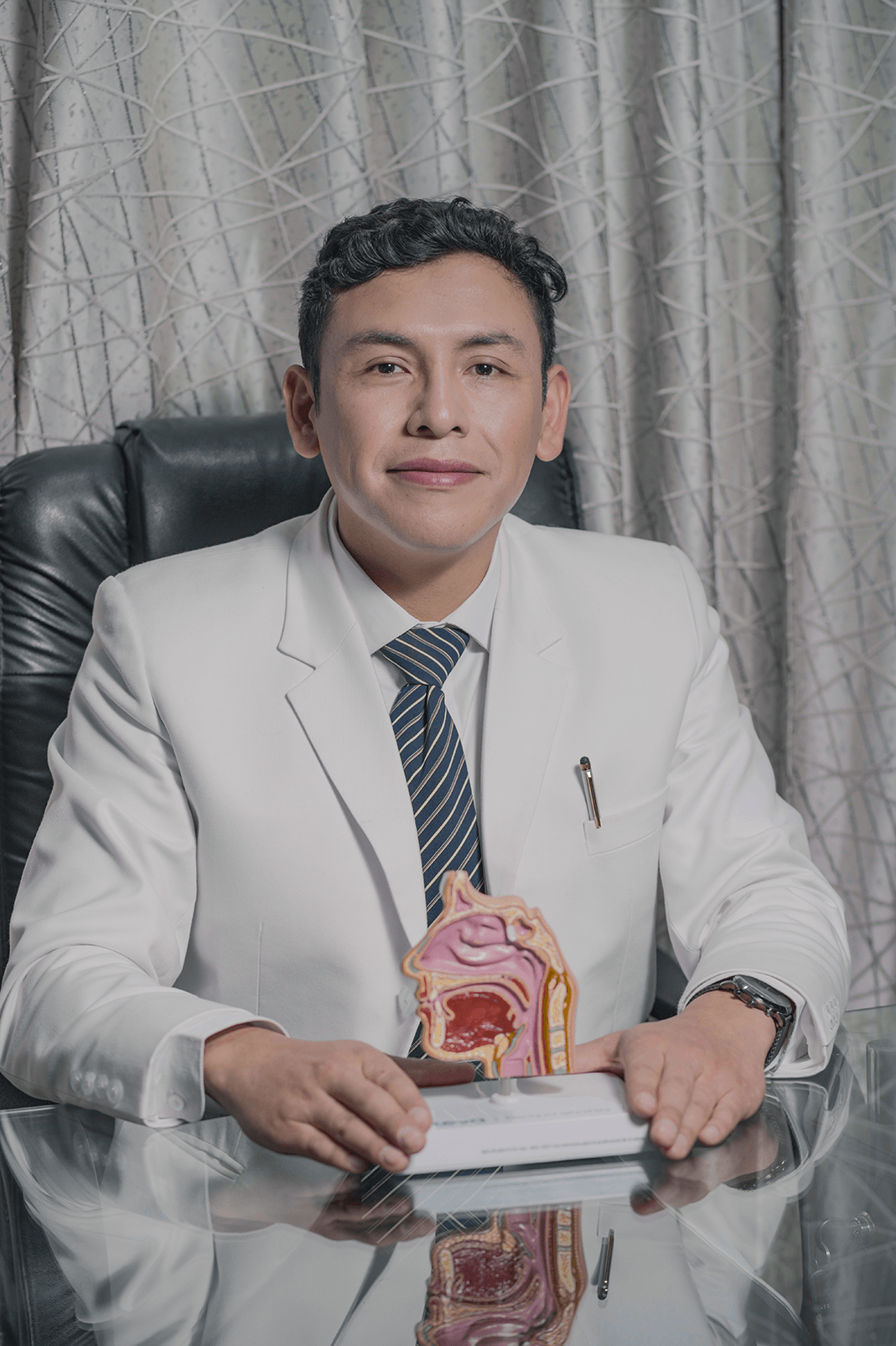 Médico cirujano con más de 10 años de experiencia, egresado de la Universidad Católica de Santa María (Arequipa), con especialidad en Otorrinolaringología por la Universidad de Ciencias Médicas de la Habana (Cuba). Investigador médico con 3 publicaciones internacionales: “Tumor de cavum: Quiste de Thornwaldt”, “Consideraciones actuales de la deformidad septal” y “Malacoplaquia ótica”.